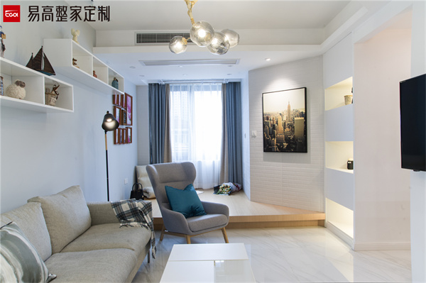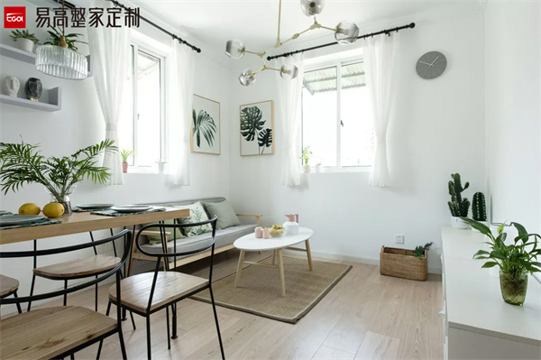 小客廳可以選擇不要電視柜,電視柜比較大會(huì)占用一部分的空間。看起來也會(huì)讓室內(nèi)顯得比較擁擠。想要看電視的話,可以選擇安裝投影儀,看起來視覺效果也更加簡潔寬敞,還能增加觀影的娛樂性。空間小,家裝顏色搭配要選擇比較清新簡約的色系比較好,比如奶油色系、原木、白色以及奶咖等等,給人一種清爽大氣簡約的感覺,不會(huì)有壓迫感。