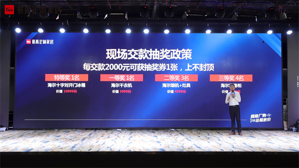 ▲易高家居主動營銷總監(jiān)孫宇發(fā)布優(yōu)惠政策