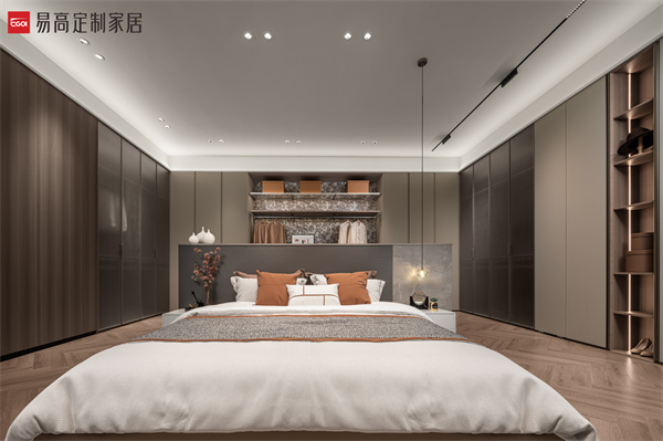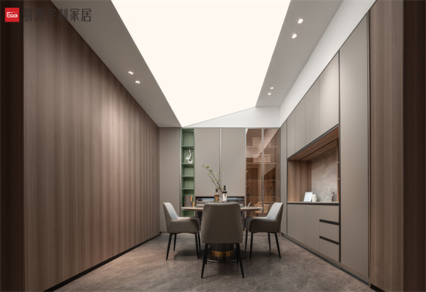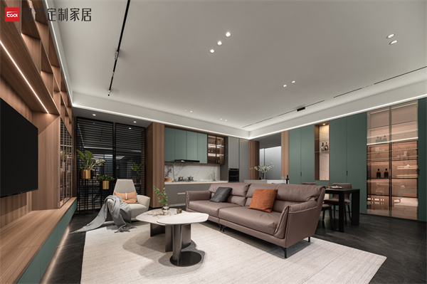 半開放收納體系滿足對私密空間的多樣追求,以克制簡潔的線條,鋪設出素簡、立體的空間肌理,在燈光渲染下延伸出和諧寧靜的光影之美。實用的細節處理和明確的功能劃分,詮釋精致有序的生活方式。
